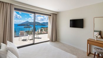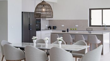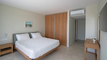 Im ersten Stock der Villa befinden sich alle sechs Schlafzimmer, die jeweils über ein eigenes Bad verfügen. Denen Zimmer sind mit maßgefertigten Möbeln aus massiver Eiche und luxuriösen Möbeln mit natürlicher Textur dekoriert, die der Villa eine wirklich unverwechselbare Note verleihen. Jedes Badezimmer verfügt über eine eigene begehbare Dusche. Der Villa hat ein sehr helles und luftiges Ambiente, mit dem offenen Grundriss Wohn- und Küchenbereich im Erdgeschoss mit einer Frühstückstheke, die sich auf die Terrasse öffnet, ein idealer Ort für ein Essen mit Aussicht zu jeder Tageszeit.