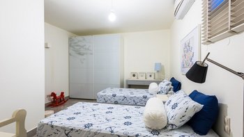 Maximale Belegung für 8 Personen, ausgenommen Kleinkinder bis zu 12 Monaten. Kleinkinder von 12 bis 24 Monaten zählen zur Gesamtbelegung. Aller 5 Schlafzimmer stehen weiterhin zur Verfügung. Bitte beachten Sie, dass die Unterkunft über eine offene Treppe zwischen dem Erdgeschoss und dem ersten Stock verfügt.