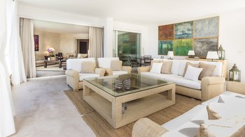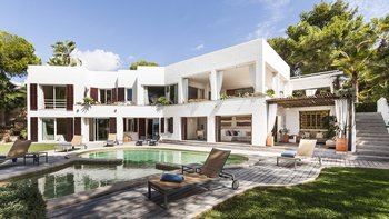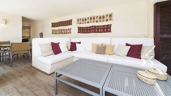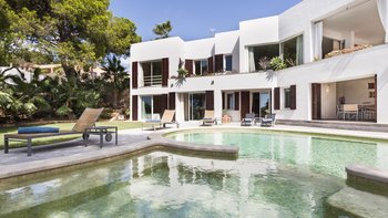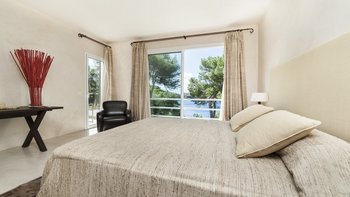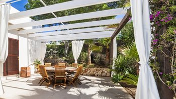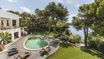 Mit Blick auf eine geschützte Bucht an der Südostküste der Insel, liegt Ca’n Mondrago inmitten von Rasengärten, die von viel Grünem abgeschirmt und durch den Schatten der Bäume gekühlt werden. Mit klimatisierten Innenräumen, wunderschön eingerichteten „Räumen“ im Freien und viel Platz in beiden verwischt die sehr schicke Villa die Grenzen von Innen- und Außenkomfort. Auf der oberen (Eingangs-)Ebene öffnet sich eine gut ausgestattete Küche zum Grundstück, wo es eine Palmengarten-Ess-/Sundowner-Terrasse gibt. Ein offen geschnittenes Wohn- / Esszimmer hat Türen zu einem überdachten Sitz- und Essbereich mit freiem Meerblick; und es gibt ein Hauptschlafzimmer und ein Zweibettschlafzimmer. All dies spiegelt sich im unteren Erdgeschoss wider, mit einem geräumigen Fernsehraum und zwei Zweibettzimmern, die sich jeweils zum Pool hin öffnen, einem weiteren Zweibettzimmer an der Seite des Hauses, einer Innenküche und einem Wechsel- und sowie einem und Chill-out-Bereich im Freien mit tief gepolsterten Sitzgelegenheiten.