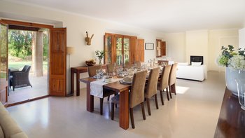 Ca’n Talia ist eine wunderschön abgeschiedene Villa auf Mallorca, umgeben von einem weitläufigen Grundstück und bietet außergewöhnlichen Service. Denen Villa ist in einem charmanten traditionellen Finca-Stil mit modernem Innendesign gestaltet. Im Erdgeschoss befinden sich ein geräumiger Wohn- und Essbereich sowie ein Fernseh- und Spielzimmer, ideal für die Kleinen. Im Obergeschoss befinden sich vier helle und einladende Schlafzimmer mit eigenem Bad. Deren Hauptschlafzimmer verfügt über eine eigene Terrasse mit Blick auf den Tennisplatz. Im Freien bietet der geräumige Essbereich im Freien den idealen Platz für ein Abendessen im Freien mit herrlichem Blick auf das Gelände. Der wunderschöne Privater Pool ist von Palmen umgeben.