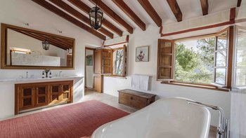 Jedes der fünf Schlafzimmer des Sa Punta verfügt über ein hervorragendes eigenes Bad und eine eigene Terrasse, und alle Wohnbereiche sind klimatisiert. Innerhalb der Gärten schließt sich ein 15 m langer beheizter Pool von einer atemberaubenden Bar an. Innerhalb der Villa umrahmen weiße Wände, Holzbalkendecken und weiche Fliesenböden die schicke Einrichtung im Landhausstil in gedämpften neutralen Farben. Zwischen den beiden liegen überdachte Terrassen, die bequem für das Leben im Freien eingerichtet sind.