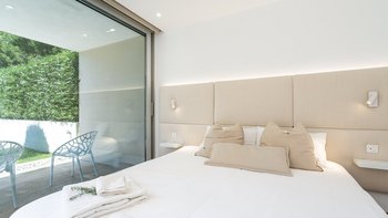 • Doppelzimmer mit eigenem Bad und Zugang zum Garten- und Poolbereich