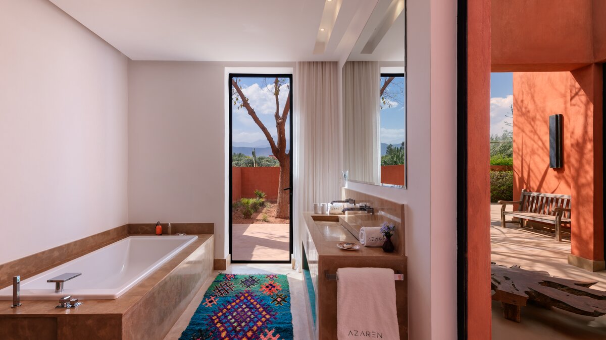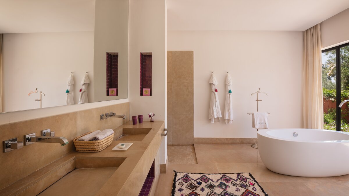 Dar Eazim ist ein exklusiver, privater Rückzugsort auf einem 8 Hektar großen, wunderschön angelegten Grundstück, nur 30 km südlich von Marrakesch. Mit spektakulärem Blick auf das Atlasgebirge bietet dieses kleine, private Anwesen die perfekte Balance aus Abgeschiedenheit, Luxus und marokkanischem Charme und bietet Platz für bis zu 22 Gäste in elf eleganten Suiten.