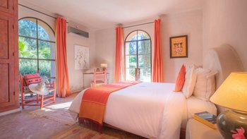Die Villa Basmah ist eine von sechs geräumigen und sehr komfortablen, voll ausgestatteten Privatvillen in üppigen Privatgärten auf dem Gelände und nur wenige Schritte von den ausgezeichneten Einrichtungen eines ausgezeichneten kleinen Hotels südlich von Essaouira entfernt. Aller sechs Villen sind individuell mit den farbenfrohen exotischen Stoffen und Zelige-Fliesen eingerichtet, für die Marokko so bekannt ist. Aller Schlafzimmer können entweder als Doppel- oder Zweibettzimmer eingerichtet werden und sind gleichmäßig groß, mit Klimaanlage und entweder einem Bad oder einer Dusche en suite. Denen geräumigen Wohnzimmer fangen die kühlenden Brisen und öffnen sich auf eine große Veranda mit Sitz- und Essbereichen im Freien, jedes mit einem fabelhaften großen Pool mit markanten marokkanischen Fliesen.