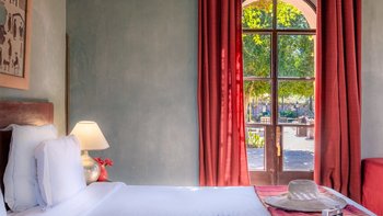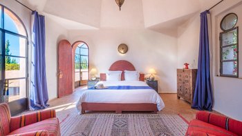 Alle Zimmer im Erdgeschoss der Villa Etoile öffnen sich zu den weitläufigen Gartenanlagen oder zur Terrasse und eines der Schlafzimmer im Erdgeschoss verfügt über zwei Zusatzbetten. Deren Hauptschlafzimmer im ersten Stock öffnet sich zu einer Terrasse und verfügt über eine Kuppeldecke mit Sternenmuster. Deren Frühstück ist im Preis inbegriffen und für andere Mahlzeiten können die Gäste wählen, ob sie unabhängig sind, vor Ort einkaufen oder sich selbst versorgen möchten, das Personal der Villa um die Zubereitung von Mahlzeiten bitten oder Gerichte aus der Speisekarte oder der Weinkarte der Villa auswählen oder à la carte im renommierten Hotelrestaurant speisen, wo sonntags Grillabende stattfinden. Denen Gäste können auch die Hotelbar nutzen und Schönheits- und Wellnessbehandlungen im Spa dieses besonderen Hotels in Anspruch nehmen. Die Mitarbeiter des Hotels geben Ihnen gerne Tipps zu lokalen Aktivitäten wie Surfen und organisieren für Sie einen Mietwagen oder einen Transfer zu den Stränden und Restaurants in der Umgebung. Ein Shuttleservice ins Zentrum von Essaouira ist ebenfalls vorhanden.
