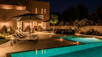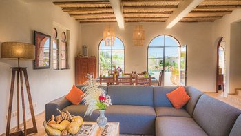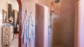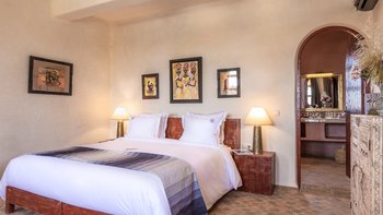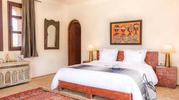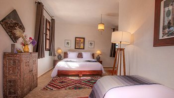 Villa Juniper ist eine von sechs sehr geräumigen, voll besetzten Privatvillen, alle mit eigenem Garten auf dem Gelände eines kleinen Hotels. Aller Villen verfügen über ein Dekor, das die hellen und exotischen Stoffe und Fliesen hervorbringt, für die Marokko bekannt ist. Denen Schlafzimmer sind flexibel eingerichtet und können entweder als Doppel- oder Zweibettzimmer eingerichtet werden und gleichmäßig groß, mit Klimaanlage und entweder einem Bad oder einer Dusche en suite. Denen geräumigen Wohnzimmer fangen die kühlende Brise ein und öffnen sich auf eine große Terrasse mit Sitz- und Essbereich im Freien, jeweils mit einem schönen Pool mit marokkanischen Fliesen. Villa Juniper ist eine der neuesten Villen, die 2019 fertiggestellt wurde. Eines Schlafzimmer im Erdgeschoss öffnet sich zur Terrasse. Das Hauptschlafzimmer im ersten Stock öffnet sich zur oberen Terrasse.