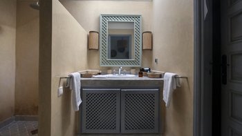 In der Nähe der pulsierenden Souks von Marrakesch sowie der herrlichen Landschaft des Atlasgebirges und des Ourika-Tals bietet die Villa einen sehr privaten, ruhigen Rückzugsort in einer Lage, die es den Gästen ermöglicht, eine anspruchsvolle Städtereise mit der Erkundung der freien Natur zu verbinden. Deren Villa ist um einen traditionellen Innenhof gebaut, von dem aus die Schlafzimmer zugänglich sind. Vier Schlafzimmer sind von guter Größe mit eigenem Bad oder Dusche und offen zu den Terrassen mit Tischen und Stühlen und zu den Gärten. Ein fünftes Schlafzimmer ist etwas kleiner. Ein Doppel- und ein Zweibettschlafzimmer sind über einen Flur in einer Ecke des Innenhofs zugänglich und die anderen beiden Schlafzimmer sind über einen zweiten Flur in einer anderen Ecke des Innenhofs zugänglich. Eines davon ist das Hauptschlafzimmer. Jedes Schlafzimmer hat eine möblierte Terrasse. Der Rest des Hauses besteht aus einem eleganten Wohnzimmer mit Essecke. Französische Türen öffnen sich zum Innenhof auf der einen Seite und einer Terrasse mit weichen Sitzgelegenheiten und Gärten auf der anderen Seite. Dessen Küche ist gut ausgestattet und wird vom Personal genutzt und genutzt, und das Esszimmer ist in der Nähe der Küche zugänglich. Auf der oberen Ebene des Hauses befindet sich eine fantastische möblierte Dachterrasse mit unvergleichlichem Panoramablick auf die schneebedeckten Gipfel des Atlasgebirges, der perfekte Ort für einen Sundowner nach einem langen Sightseeing-Tag.