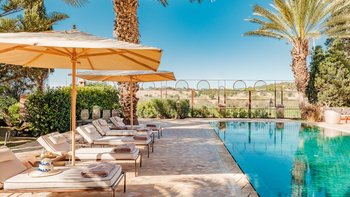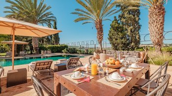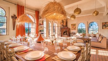Die Villa Pomelo empfängt die Gäste in ihren Terrakotta-Wänden zu einer Oase der Entspannung. Um einen malerischen Innenhof herum gibt es fünf schöne Schlafzimmer mit Bad; die drei Schlafzimmer im Erdgeschoss öffnen sich zum Innenhof oder zur Terrasse, ein viertes öffnet sich zur Poolterrasse, während die Suite im Obergeschoss zum Dach hin öffnet. Ein großer offener Grundriss mit Barbereich und Kamin für die Wintermonate ist in sanften neutralen Farbtönen gehalten, mit weichen Möbeln, die Farbtupfer in Orange und einzigartigen Kunstwerken an den Wänden hinzufügen. Aller Gäste, die im Pomelo übernachten, erhalten ein kostenloses Frühstück und weitere Mahlzeiten können von einer Speisekarte zubereitet werden – - Sie können entweder drinnen oder draußen auf der Terrasse speisen. Die Terrasse dieser Villa ist für das Leben im Freien konzipiert; der Privater Pool erstreckt sich über 18 m mit einem separaten Kinderbereich und ist mit bequemen Liegen und Sonnenschirmen ausgekleidet, damit sich die Gäste am Pool entspannen können.