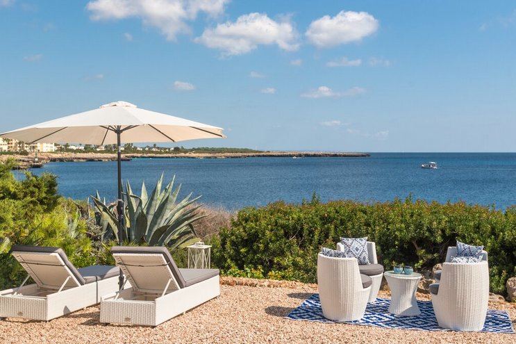Direkt über dem Meer gelegen, ist diese moderne Villa auf Menorca in Gehweite von Geschäften und Restaurants eine hervorragende Wahl für zwei oder eine kleine Familie.