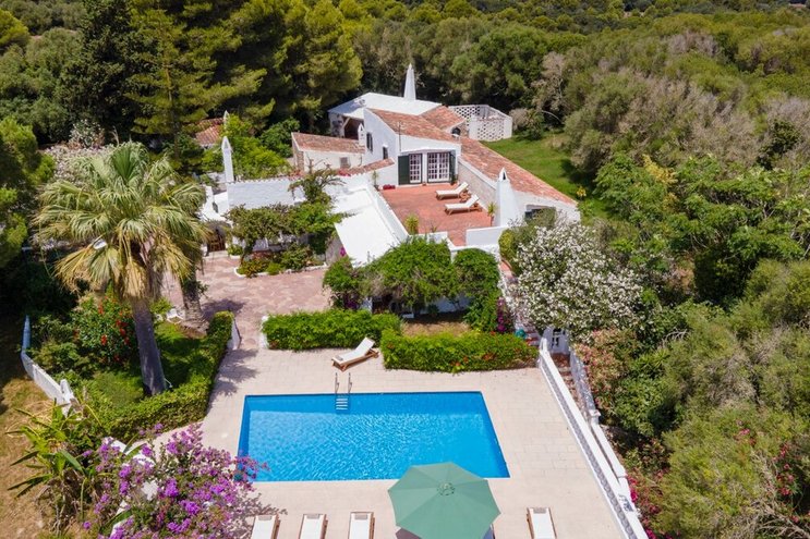 Die Villa La Quinta ist ein stilvoller Rückzugsort auf einer Klippe an der Südküste Menorcas und bietet einen atemberaubenden Meerblick, ein Haupthaus mit drei Schlafzimmern und ein separates Nebengebäude mit einem Schlafzimmer.
