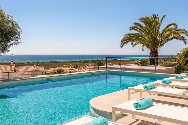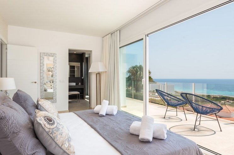Die Villa Prestige ist eine helle und moderne Unterkunft für große Gruppen im sonnigen Menorca und bietet einen unglaublichen Weitblick über den Strand Son Bou.
