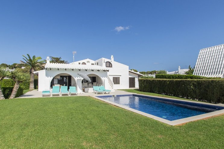 Nur 600 m vom weitläufigen Sandstrand von Son Bou entfernt, ist diese Luxusvilla auf Menorca gut für das Leben im Innen- und Außenbereich geplant und gut für die Annehmlichkeiten des Resorts positioniert.