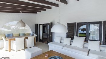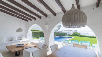 Die große, teilweise überdachte Terrasse ist mit großzügigen Sitzgelegenheiten, Sitzsäcken und einem Essbereich ausgestattet – der perfekte Rahmen für ein Abendessen im Freien vom Grill oder ein oder zwei Drinks, während die Sonne untergeht. Dessen Terrasse führt zum PRIVATER POOL, umgeben von Rasengärten. Ein Tor vom Grundstück öffnet sich zu einem Weg, der zu einem schmalen Zementpfad führt, der über die Felsen führt. Ein Leiter mit Stufen bietet Zugang zum Meer. Deren Anwesen ist nur 1,2 km von Binibeca mit seinen hübschen weiß getünchten Gebäuden und dem goldenen Halbmond Sandstrand mit Restaurant und anderen Einrichtungen entfernt. Deren Hauptstadt Mahón, nur 11 km entfernt, mit einer großen Auswahl an Geschäften und Restaurants, ist ebenfalls leicht zu erreichen.