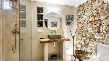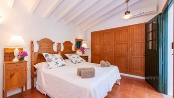 Die Finca Bonita liegt großartig in der menorquinischen Landschaft und ist friedlich eingebettet in 30 Hektar wunderschöne, grüne Gärten. Dessen Anwesen ist rustikal, charmant und traditionell, kombiniert mit modernem Komfort. Im Inneren finden Sie einen geräumigen Wohnbereich, einen Essbereich und eine Küche, die in einem einladenden Boutique-Stil mit freiliegenden Holzbalken und weißen Steinmauern eingerichtet sind. Deren Villa verfügt über sechs schöne Schlafzimmer, von denen sich die meisten im Erdgeschoss befinden und über ein eigenes Bad verfügen. Deren Hauptschlafzimmer befindet sich im Obergeschoss, komplett mit eigener sonniger Terrasse.