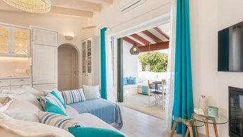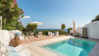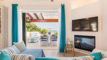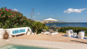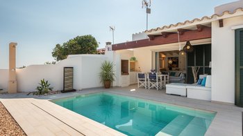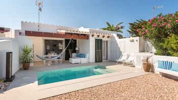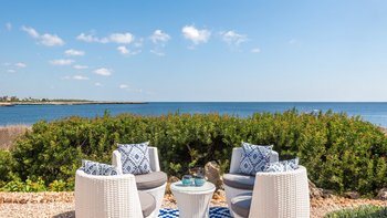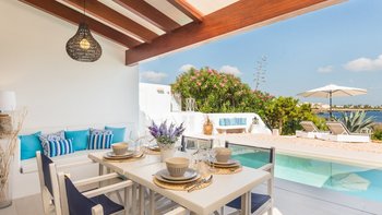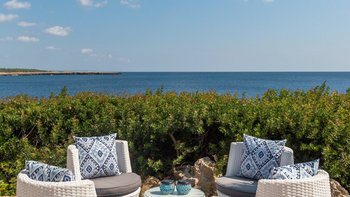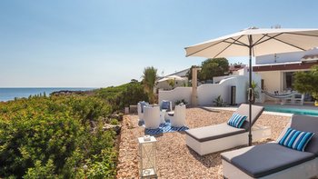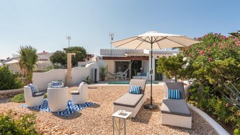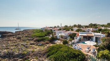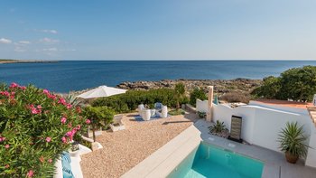 Direkt über dem Meer gelegen, ist diese moderne Villa auf Menorca in Gehweite von Geschäften und Restaurants eine hervorragende Wahl für zwei oder eine kleine Familie.