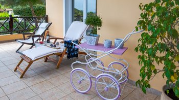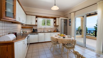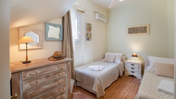 Die Küche im Landhausstil verfügt über eine durchgehende Fensterwand, die zur Terrasse führt, und es gibt auch Doppeltüren vom kühlen Wohnzimmer. Denen einfach eingerichteten Schlafzimmer öffnen sich auf eine Terrasse oder einen Balkon, zwei Schlafzimmer im Erdgeschoss, zwei im Obergeschoss und alle mit Klimaanlage. Und das helle und luftige Haus verfügt über Sat-TV, WLAN und einen eingebauten Grill.