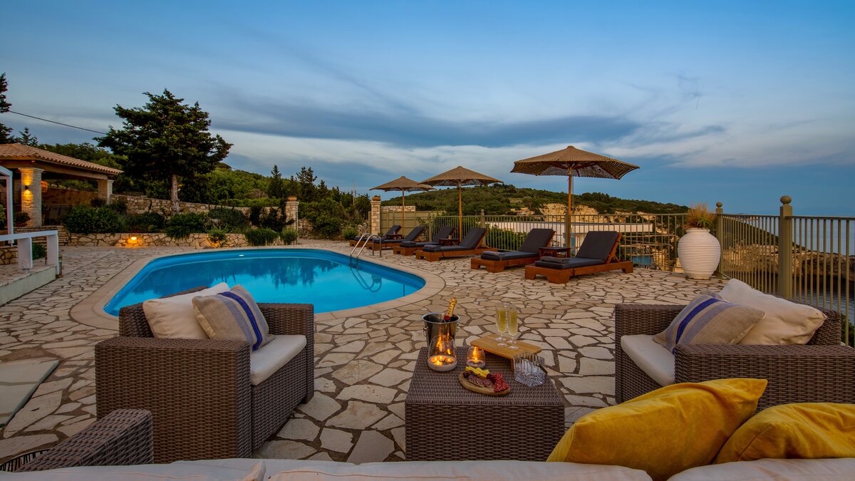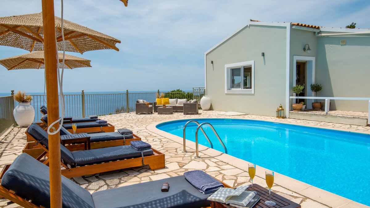 Villa Ava ist eine Villa mit drei Schlafzimmern an der ruhigen Südwestküste von Paxos, Griechenland, mit einer unglaublichen Lage, einer wunderschön eingerichteten Terrasse und erhöhtem Meerblick.