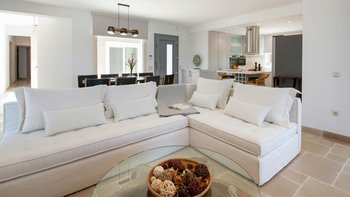 Im Inneren ist der offene Wohnbereich der Villa ein warmer und einladender Raum, in dem sich das Wohnzimmer, der Essbereich und die Küche nahtlos ineinanderfügen. Deren voll ausgestattete Küche ist wunderschön und mit hochwertigen Geräten ausgestattet, was sie zu einem Traumraum für die Zubereitung köstlicher Mahlzeiten macht. Deren angrenzende Essbereich ist perfekt, um Ihren kulinarischen Kreationen zu genießen, und an wärmeren Tagen bietet der frische Außenbereich einen schönen Ort, um Ihren Mahlzeiten umgeben von frischer Luft und natürlicher Schönheit zu genießen. Jedes der vier geräumigen Doppelschlafzimmer ist geschmackvoll eingerichtet. Drei der vier Schlafzimmer verfügen über ein eigenes Bad und ein separates Bad, in dem alle Gäste auf ihre individuellen Bedürfnisse eingehen können. Das Design der Villa sorgt für eine helle und luftige Atmosphäre und verbindet sich nahtlos mit der Natur.
