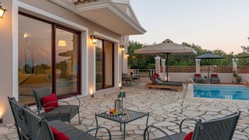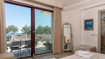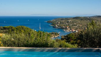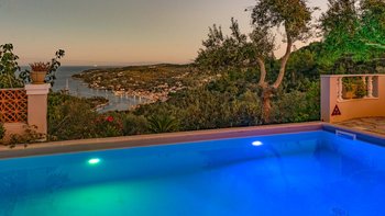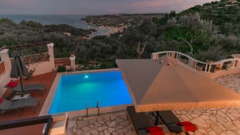 Diese Oase mit zwei Schlafzimmern in Paxos bietet einen dramatischen Meerblick vom Poolbereich und von der Villa selbst und ist ideal für Gäste, die eine reichhaltige Mischung aus Komfort und Ruhe suchen.