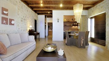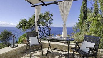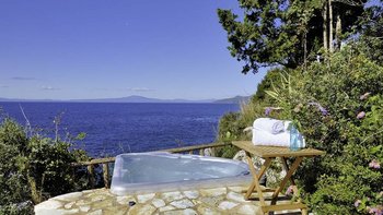 Diese ruhig gelegene, einstöckige Villa, die sich die niedrige Landzunge mit dem Schwestervilla Pelagia House teilt, nutzt das Gute aus der herrlichen Aussicht mit zwei möblierten Terrassen mit Blick auf das Meer und einem privaten Jacuzzi am Klippenrand, der natürlich von Grünem abgeschirmt ist. Innerhalb der Villa, die mit Feng Shui im Hinterkopf entworfen wurde, öffnet sich ein großzügiges Schlafzimmer mit Doppelbett zur Terrasse mit Meerblick, das einladende Badezimmer ist komplett mit Hydromassage-Badewanne und -Dusche ausgestattet. Dessen geräumige Wohn- / Esszimmer grenzt an eine kleine Küche und hat zwei Glastüren zu beiden Terrassen. Durchgehend mit müheloser Eleganz eingerichtet, verfügt das kühle und beruhigende Dekor mit kahlen Steinmauern und Naturholz, was eine Atmosphäre der Gelassenheit erzeugt und der Villa in Designmagazinen Beifall einbringt. Felsenbaden direkt unterhalb des Pelagia Cottage kann ideal für ein Bad am frühen Morgen sein, und für Spaziergänge am Wasser entlang des Sandes ist der Strand von Stoupa nur einen Spaziergang entfernt, ebenso wie die Einrichtungen des Resorts im schlichten Dorf Stoupa.