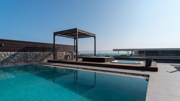 Im Außenbereich können die Gäste den großen Pool und den Jacuzzi genießen. Es gibt viele Plätze, um sich in der Sonne zu entspannen, sowie einen Speisesaal im Freien für ein gemütliches Mittagessen. Der Villa ist weniger als 3 km von Strandbars, Geschäften und Tavernen entfernt, während lokale Sehenswürdigkeiten wie Gennadi und Lachania sind.