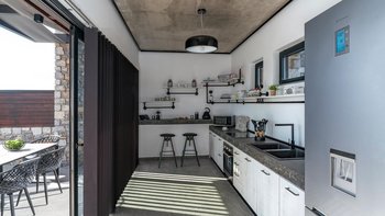 Ovio ist ein wunderbar stilvolles, dreistöckiges Anwesen auf Rhodos, entworfen mit einem außergewöhnlichen Blick auf die Ägäis. Deren gesamte Villa ist modern-industriell gestaltet und verfügt über Betondecken, einzigartige Metallarmaturen und graue Steinfliesen. Im Erdgeschoss befinden sich eine voll ausgestattete Küche, ein Essbereich und ein schöner Wohnbereich. Im ersten Stock finden Sie zwei große Schlafzimmer, jedes mit einem Kingsize-Bett ausgestattet, neben einem übergroßen Bad mit zwei Waschbecken und einer ebenerdigen Dusche. Auf der OBERSTE ETAGE befindet sich die fabelhafte Penthouse-Suite mit eigenem Bad und einer großen Terrasse mit Sonnenliegen und Liegestühlen zum Sonnenbaden.