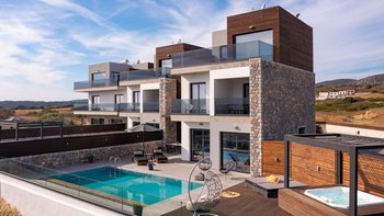 Das Ovio ist eine geräumige und supermoderne Villa mit einem Privater Pool und einem beheizten Whirlpool und bietet Ihnen von jedem der stilvollen Zimmer Panoramablick auf das Meer.