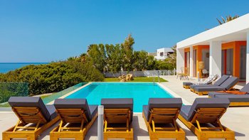 Topaz ist eine wirklich beeindruckende Villa auf Rhodos mit einzigartiger moderner Architektur und frischem, stilvollem Interieur. Deren Villa verfügt über einen geräumigen Wohn-, Ess- und Küchenbereich, der optimal gestaltet ist, um viel natürliches Licht zu lassen. Es gibt sieben schöne Schlafzimmer auf drei Etagen, von denen fünf mit einem eleganten Bad gepaart sind. Topaz ist ideal für einen Wellness-Rückzug und verfügt auch über einen gut ausgestatteten Fitnessraum, der Ihren Körper während Ihrer Abwesenheit glücklich und gesund hält. Fabelhafter Meerblick kann von fast überall genossen werden, insbesondere von den Wohnbereichen und Schlafzimmern an der Vorderseite der Villa.