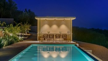 Draußen öffnet sich die Villa auf großzügige Terrassen und Landschaftsgärten. Ein beeindruckender 15 Meter langer, beheizter Pool mit Blick auf die hügelige Landschaft wird durch einen eigenen Poolbereich mit Umkleidekabine, Bad und beheizten Außenduschen ergänzt, sodass Sie zu jeder Jahreszeit Spaß haben können. Eine Außenküche und ein Essbereich bieten den perfekten Rahmen für lange Abende unter dem Sternenhimmel.