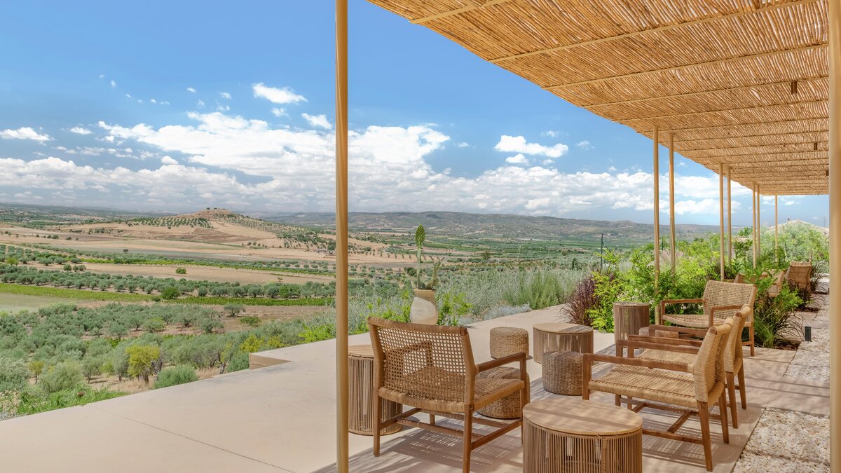 Eine Panoramaterrasse im ersten Stock bietet einen ruhigen Aussichtspunkt, von dem aus man die umliegenden Olivenhaine bewundern kann.