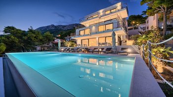 Dieses herrliche Anwesen ist unser größtes in ganz Kroatien und bietet Platz für bis zu 18 Gäste in 9 schönen Schlafzimmern. Der epische Infinity-Pool blickt auf das Meer und ist mit genügend Liegen gesäumt, damit die ganze Gruppe sich sonnen und Kontakte knüpfen kann, während sie den traumhaften Meerblick bewundern.
