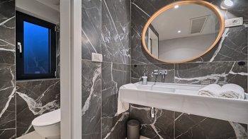 Die Unterkunft Split befindet sich auf vier Etagen, was auch für große Gruppen ideal ist, um ihren eigenen Raum zu genießen. Im Erdgeschoss befindet sich ein modernes Wohnzimmer, das durch Glasschiebetüren auf die Terrasse hinausgeht und mit zwei nebeneinander liegenden Esstischen im Freien ausgestattet ist. Deren erste und dritte Etage sind den Schlafbereichen gewidmet – alle Schlafzimmer sind Doppelschlafzimmer mit eigenem Bad oder Dusche. Im zweiten Stock befindet sich ein Wellnessbereich mit Sauna, Jacuzzi und einem voll ausgestatteten Fitnessraum. Zu den weiteren Unterhaltungsmöglichkeiten im Innenbereich gehört ein Spielzimmer mit Tischfußball.