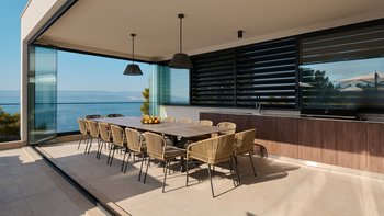 Eingebettet an der schönen dalmatinischen Küste in der Nähe von Split, Kroatien, ist die Villa Venus ein einladender Rückzugsort für Familien und Gruppen von Freunden. Dieses außergewöhnliche Anwesen verfügt über acht geräumige Schlafzimmer mit eigenem Bad, die jeweils für höchsten Komfort ausgelegt sind. Mit einem privaten Spa-Behandlungsbereich neben einem Whirlpool und einer Sauna, einer gemütlichen Feuerstelle für abendliche Zusammenkünfte und einem Home-Fitnessraum und einem Aufzug verbindet die Villa Venus Bequemlichkeit mit Entspannung. Mit einem Innen- und einem Außenpool können die Gäste entweder schwimmen und dabei einen atemberaubenden Blick auf das Meer und die dahinter liegenden Berge genießen oder sich in der Ruhe des Innenbereichs entspannen.