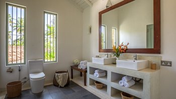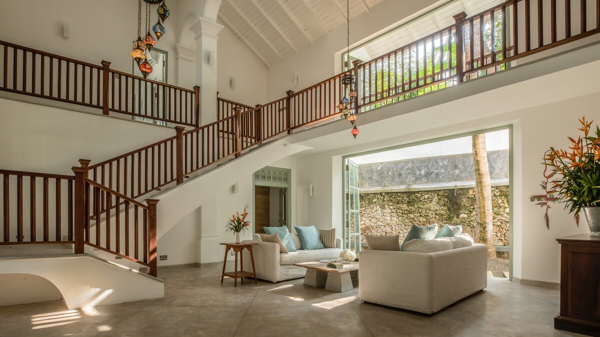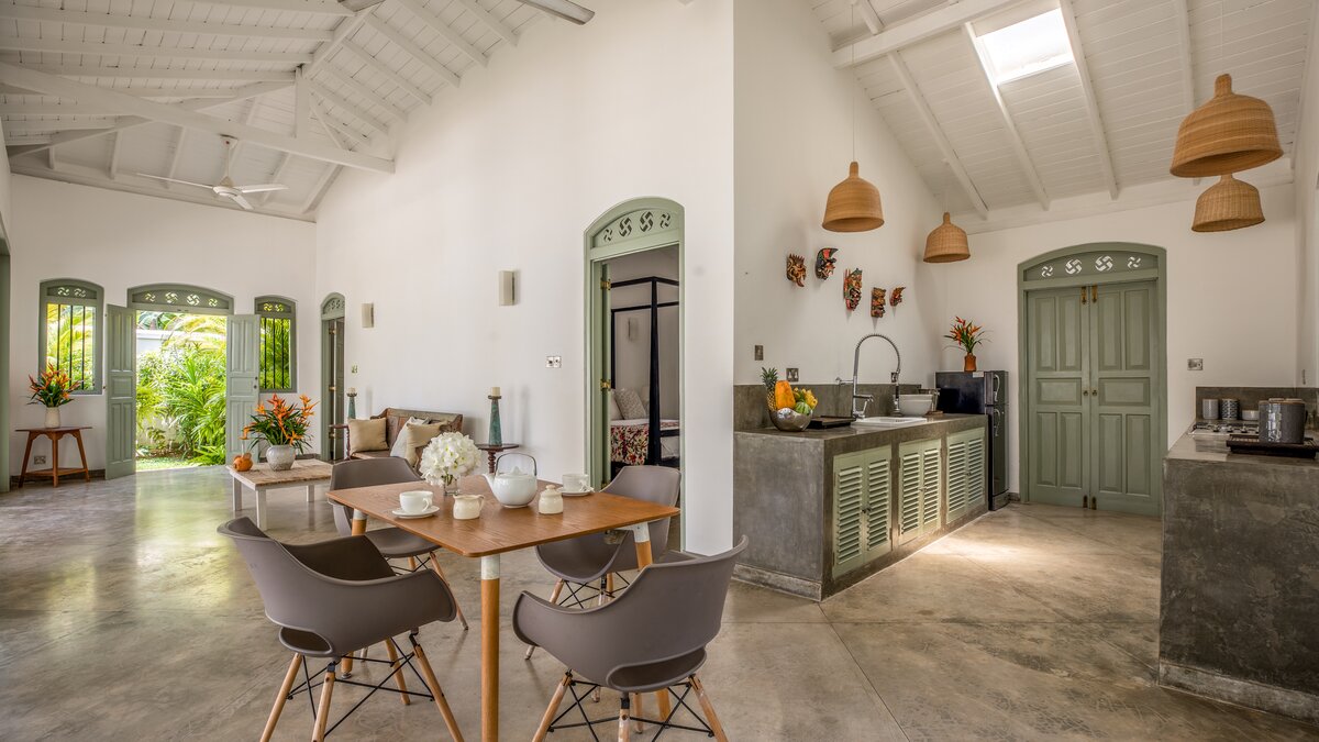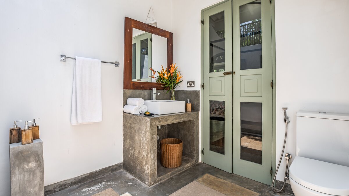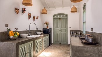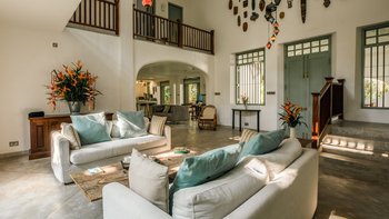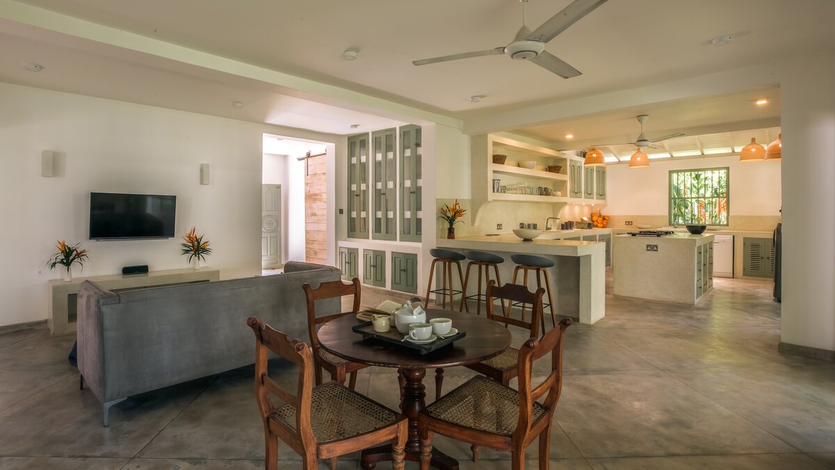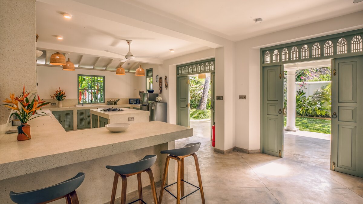 Die Küche des Haupthauses führt auf die Terrasse der Villa, die sich über das gesamte Gebäude erstreckt, und ist der perfekte Ort zum Essen und Entspannen. Denen Gäste können den kompletten Kochservice während ihres Aufenthalts in Anspruch nehmen, mit köstlichen Speisen direkt aus dem Indischen Ozean. An Ende des Poolbereichs befindet sich eine beruhigende Liegewiese, die sich perfekt zum Entspannen im Freien eignet. Deren Lage der Villa ist ideal, eingebettet in einem charmanten Dorf in der Nähe von drei berühmten Surfbreaks und nur wenige Schritte vom Strand entfernt. In der Nähe befinden sich die pulsierenden Ahangama, Midigama, Kabalana, Weligama und Mirissa, die viele Möglichkeiten für begeisterte Surfer, Wal- und Delfinbeobachter bieten und diejenigen, die den einzigartigen Anblick der Stelzenfischer erleben möchten. Die historische Festung von Galle, ausgezeichnete Restaurants und Bootsfahrten auf dem Koggala-See stehen Ihnen in Ihrer Freizeit zur Verfügung.