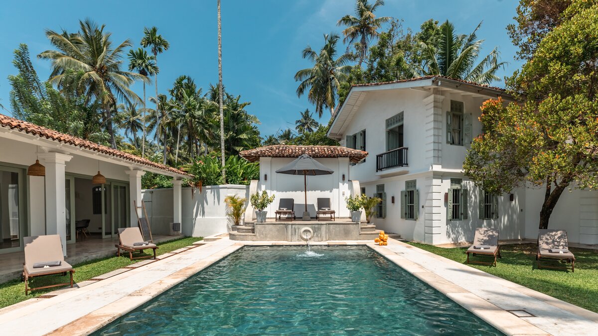 In der Nähe von drei unglaublichen Surfstränden in Ahangama, Sri Lanka, ist Pearl eine stilvolle Villa mit sechs Schlafzimmern mit schöner Inneneinrichtung und Kochservice inklusive.