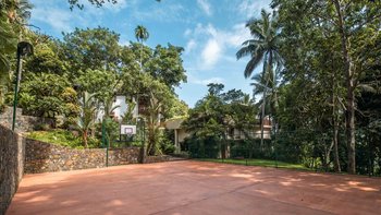 Draußen bietet der mit Flutlicht beleuchtete Spielplatz den perfekten Ort, um eine Partie Fußball, Cricket, Badminton oder Basketball zu spielen. Der große Swimmingpool befindet sich vor dem Haupthaus und wird von einem Pool-Pavillon überblickt, der sich perfekt für das Abendessen zu Hause eignet. Deren Gartenhaus beherbergt einen hochmodernen Fitnessraum und Massageraum. In der Nähe befinden sich mehrere Geschäfte und Restaurants in Galle sowie in der Umgebung. Der nächste Flughafen der Villa ist nur 90 Minuten mit dem Auto entfernt, und es gibt auch einen alten buddhistischen Tempel, von dem angenommen wird, dass er über 2000 Jahre alt ist, nur wenige Minuten von der Villa entfernt.