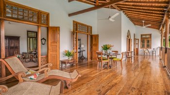 Das Rambutan wurde kürzlich mit einem Schwerpunkt auf Komfort renoviert und mit neuen Möbeln und kleinen Details in jede Ecke der Villa integriert, um sich für die Gäste wie ein Zuhause zu fühlen. Dessen offener Grundriss Wohn- und Essbereich im Erdgeschoss ermöglicht es dem Raum, sich wirklich zu öffnen und lädt dazu ein, Gespräche zwischen den Gästen freier zu führen, ohne architektonische Einschränkungen. Ebenfalls auf dieser Ebene bieten eine klimatisierte Bibliothek und ein Arbeitsbereich ruhige Orte zum Entspannen, und die Küche der Villa befindet sich ebenfalls hier. Deren Kochservice ist in Ihrem Aufenthalt inbegriffen. Genießen Sie frische tropische Früchte aus der Region oder gönnen Sie sich eine große Auswahl an Meeresfrüchten direkt aus dem Indischen Ozean. Unser erfahrener Küchenchef kocht sowohl westliche und auch lokale Gerichte nach Ihren Wünschen. Im ersten Stock des Haupthauses befinden sich insgesamt vier Schlafzimmer mit eigenem Bad, jedes mit Klimaanlage und großzügiger Aufteilung, von denen zwei über einen Balkon verfügen, mit Blick auf den Pool und einen weit entfernten tropischen Baldachin. Dessen untere Gartenebene verfügt über drei weitere Schlafzimmer mit eigenem Bad sowie ein Spielzimmer mit Tischtennis.