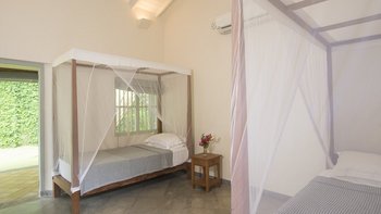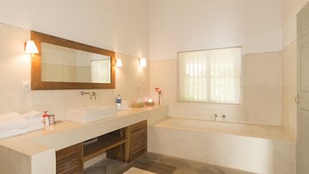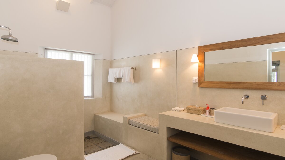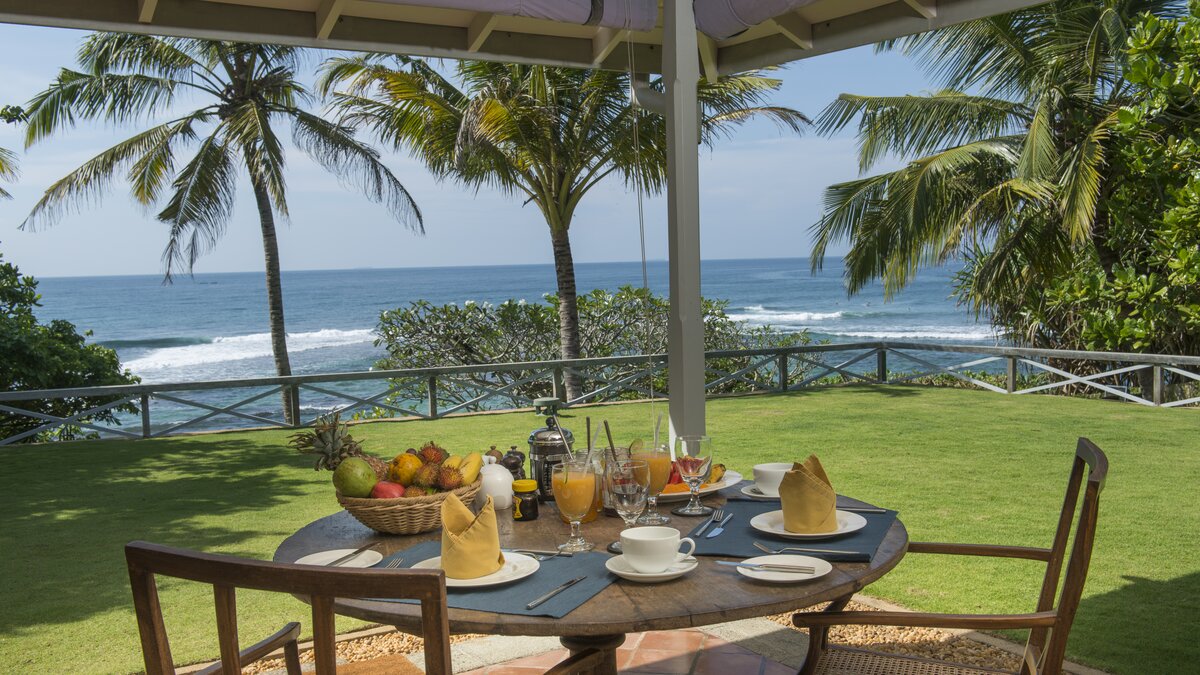 Die Lage der Villa Ruby ist wunderbar, direkt am Wasser mit weitreichendem Meerblick und direktem Zugang zum Strand. Das Innere der Villa ist modern und minimal, mit hohen Gewölbedecken, auffälligen Kunstwerken und schönen Farrow & Ball grünen Fensterläden, die die Natur willkommen heißen. Es gibt einen großen offenen Grundriss mit bequemen Sitzgelegenheiten und Billardtisch. Treten Sie hinaus auf die geräumige Terrasse, die sich perfekt zum Essen im Freien eignet – der Küchenchef der Villa ist ausgezeichnet und kann eine Reihe westlicher und sri-lankanischer Küche zubereiten, so dass die Gäste sich zurücklehnen und entspannen können.