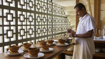 Die Küche ist das Herzstück der Villa, und dort finden Sie den erfahrenen, aber sehr bescheidenen Koch. Er ist bestrebt, Produkte von lokalen Bauern zu verwenden und frischen Fisch von lokalen Märkten oder direkt vom Fischer zu kaufen. Jeden Morgen, nachdem Sie vom Markt mit frischem Gemüse und Meeresfrüchten zurückkehren, werden Sie ihn sehen, wie er das Gemüse und die Gewürze im Garten überprüft. Supun verfügt über langjährige Erfahrung und ist bestrebt, sein Wissen über die sri-lankische Küche und Gewürze zu teilen. Menüs sind auf Anfrage erhältlich.