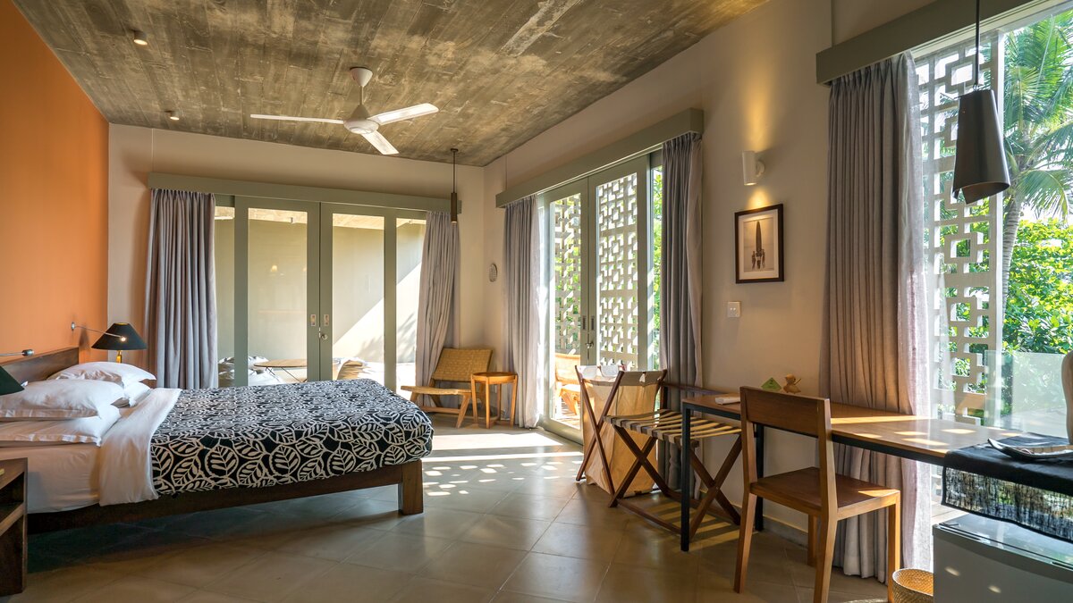 Tamarind Sands ist eine schicke, moderne und ultra-komfortable Villa an der Südküste Sri Lankas. Perfekt am östlichen Rand einer wunderschönen Sandbucht gelegen, haben die Gäste direkten Zugang zum weichen, goldenen Sandstrand darunter, während die Aussicht auf Sonnenaufgang und Sonnenuntergang von der Villa einfach spektakulär ist. Folgen Sie dem Soundtrack des Ozeans durch den Flur, vorbei an der Küche, in der der qualifizierte Koch und sein Team alle Mahlzeiten mit Zutaten von lokalen Bauern und Märkten zubereitenund einschließlich köstlicher Obstplatten und Picknicks am Strand, wenn Sie möchten – und in den offenen Grundriss Wohnbereich. Dieser ist mit superweichen Sitzgelegenheiten für Entspannung im Innenbereich und einem langen Esstisch ausgestattet, der sich auf die Terrasse mit Blick auf den atemberaubenden Indischen Ozean erstreckt. Dessen malerische Terrasse ist mit eleganten Holzliegen und Sonnenschirmen ausgestattet und befindet sich neben dem einladenden Infinity-Pool (mit Kinderbereich), wo Sie die Aussicht über den tropischen Garten genießen können.