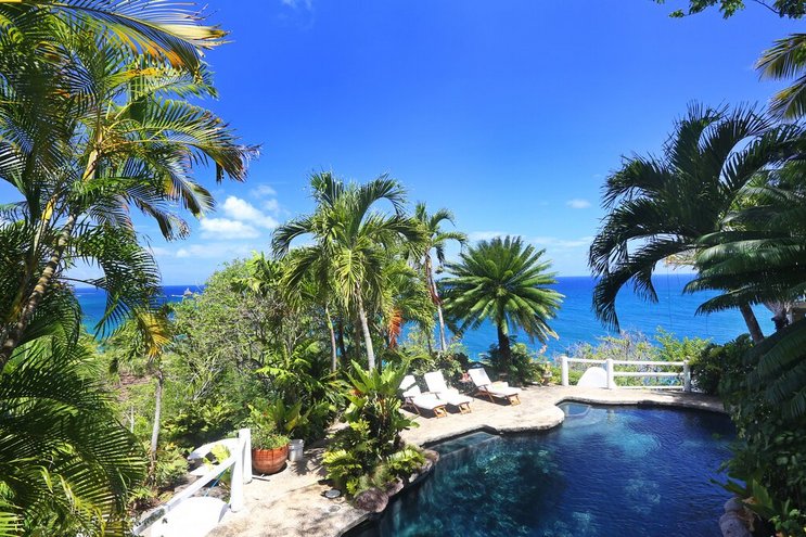 Die Krönung einer bewaldeten Landzunge an der Spitze der Marigot Bay ist eine atemberaubend gelegene Luxusvilla in St. Lucia mit einem großen Garten, einem 20 Meter langen Pool und einem Uferweg.