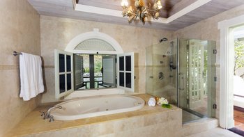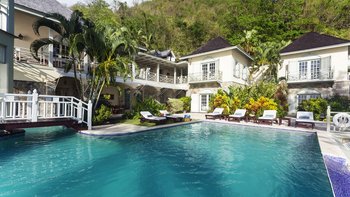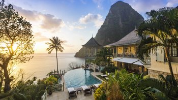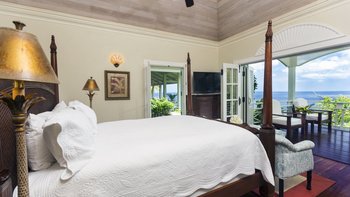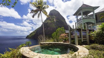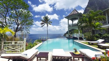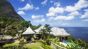 Dieses wunderschöne Haus, bei dem fast jeder Raum nach außen hin geöffnet ist, ist perfekt für ein nahtloses tropisches Leben im Innen- und Außenbereich konzipiert. Im Erdgeschoss befindet sich eine gut ausgestattete Küche mit einem Gang, der zu einem geräumigen Wohn-/Esszimmer führt. Von hier aus gelangen Sie über französische Türen zu einem Balkon mit weichen Sitzgelegenheiten, der zu einem Pavillon auf der oberen Ebene führt, der für Mahlzeiten im Freien mit Blick auf den Pool eingerichtet ist. Ebenfalls im Erdgeschoss befindet sich die außergewöhnliche Master-Suite mit eigenem Bad mit Jacuzzi-Badewanne und separater Regendusche, ein privater Balkon mit herrlichem Blick auf Petit Piton sowie ein PRIVATER POOL und eine Sonnenterrasse in einem abgeschiedenen, geschlossenen Gartenbereich. Dies ist wirklich eine dekadente Suite für ein Paar, das einen besonderen Anlass feiert. Vervollständigt wird das Erdgeschoss durch zwei weitere Doppelschlafzimmer, beide mit Badezimmern mit Jacuzzi-Badewannen und separaten Duschen en suite und Zugang zu einem privaten Balkon oder einer Terrasse. Eine Treppe führt hinunter in das untere Erdgeschoss, wo sich zwei Zweibettschlafzimmer mit Badezimmern en suite, einschließlich Jacuzzi-Badewannen und separaten Duschen, sowie Türen zu einer Terrasse oder einem Balkon befinden. Ein Familienzimmer vervollständigt das untere Erdgeschoss, das sich zur Poolterrasse hin öffnet. Draußen erstreckt sich der große private Infinity-Pool um eine Ecke des Grundstücks, ein Wasserfall und eine schattige Natursteingrotte sorgen für Interesse und bieten Schutz vor der Sonne. Der zweistöckige Pavillon und das Sonnendeck sind über eine Brücke über den Pool zugänglich, während die untere Hälfte mit Liegestühlen ausgestattet ist und die Gäste direkt ins Wasser schlüpfen können. Der Sugar Beach Resort ist nur 0,5 km entfernt, wo Sie ein Spa, Bars und Restaurants und zwei weiße Sandstrände finden, während Soufriere nur eine kurze Autofahrt vom Haus entfernt ist.
