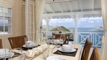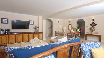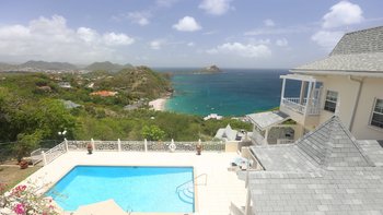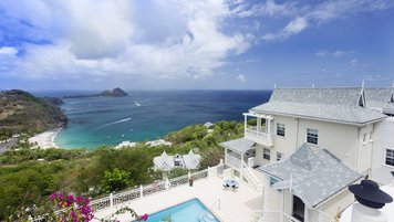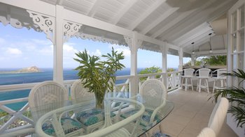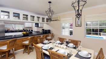 Diese Luxusvilla in Saline Point in der Nähe des Cap Estate ist wunderschön und mit viel Liebe zum Detail gestaltet. Denen geräumigen, hellen und luxuriösen Zimmer verfügen über eine ruhige Farbpalette in sanften Marine-Chic-Tönen und sind alle äußerst komfortabel und stilvoll eingerichtet, mit prallen gepolsterten Sofas und feiner Bettwäsche. Es gibt eine intelligente, hochmoderne Küche mit Frühstückstheke und Essbereich mit Zugang zu den Terrassen. Drei Schlafzimmer mit eigenem Bad befinden sich im ersten Stock, zwei davon haben Super-Kingsize-Betten und einen eigenen Balkon, während das dritte Schlafzimmer ein Zweibett ist, das bei Bedarf zu einem Doppelbett zusammengestellt werden kann. Auf der Ebene der Poolterrasse befindet sich eine helle und luftige, in sich geschlossene Apartment-Suite mit einem vierten Schlafzimmer und einem OFFENER GRUNDRISS Wohnzimmer mit Küchenzeile und Sitzbereich.