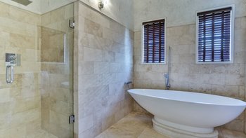 In der Hauptvilla gibt es einen enormen OFFENER GRUNDRISS Wohn- und Essbereich. Dieser Raum hat hohe Decken, viel Tageslicht und eine Handvoll Fenstertüren, die Zugang zu einer Terrasse mit Blick auf das Meer und Martinique bieten, während sich direkt an der Seite eine moderne, voll ausgestattete Küche befindet. Darüber hinaus gibt es drei Schlafzimmer. Eines Hauptschlafzimmer mit einem Kingsize-Himmelbett, Bad en suite und Zugang zum Balkon und zwei Doppelzimmer, beide mit Bad en suite.