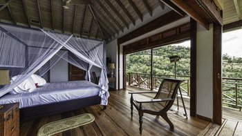 Die Krönung einer bewaldeten Landzunge an der Spitze der Marigot Bay ist eine atemberaubend gelegene Luxusvilla in St. Lucia mit einem großen Garten, einem 20 Meter langen Pool und einem Uferweg.