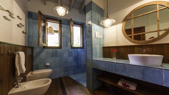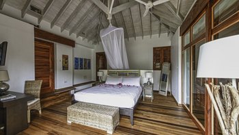Die Villa verfügt über fünf Gebäude, von denen das größte eine moderne Frühstücksküche mit Zugang zu einer Terrasse im Freien beherbergt und ein großes Wohnzimmer auf zwei Ebenen mit Dachsparren, künstlerischer Beleuchtung, großen Sofas und einem Refektoriumstisch. Mit einer guten Mischung aus Zweibett-, Kingsize- und Himmelzimmern, alle mit TV und Klimaanlage, gibt es ein Gästeapartment in der Nähe des Haupthauses. Jedes der drei Cottages verfügt über zwei Schlafzimmer mit eigenem Bad, die durch ein Wohnzimmer mit Wet Bar verbunden sind. Der Master-Cottage verfügt über eine private Sonnenterrasse mit Jacuzzi.