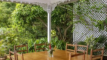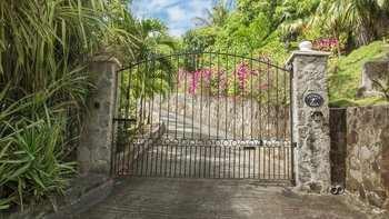 Während die Gäste durch die privaten Tore und über die abgeschiedene Auffahrt in Richtung der Villa fahren, begleiten sie auf ihrem Weg bunte purpurrote Blumen und glückselig wiegende Palmen. Bei der Ankunft liegt der Zephyr Hill in Gelassenheit, mit Blick auf das umliegende Karibikmeer und den blauen Himmel.