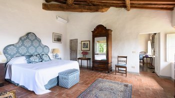 Bitte beachten Sie, dass das Haupthaus für bis zu 10 Personen zur Verfügung steht und für 11 – 12 Personen auch das Gartenschlafzimmer zur Verfügung steht. Deren Eigentümer wird gelegentlich im Nebengebäude wohnen, wenn die Villa für bis zu 10 Personen gebucht wird. Deren Bauernhaus hat einen zweiten, separaten Eingang und blickt und auf die Terrassen oder den Poolbereich des Haupthauses.