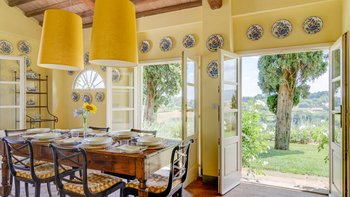 Nur einen Spaziergang von einem charmanten Dorf mit allen notwendigen Annehmlichkeiten für den Urlaub entfernt, vereint diese Familienvilla in der Toskana modernen Stil in ein charakteristisches Gebäude mit Blick auf kilometerlange Landschaften.