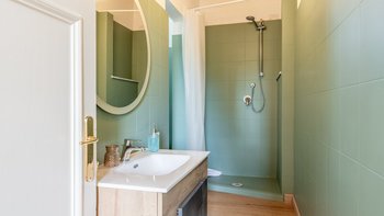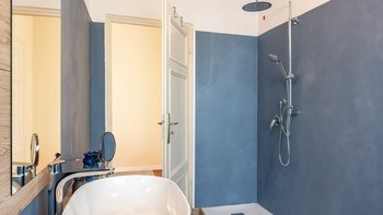 • Master-Doppelschlafzimmer mit Schlafcouch und Dusche en suite mit Zugang zum Balkon